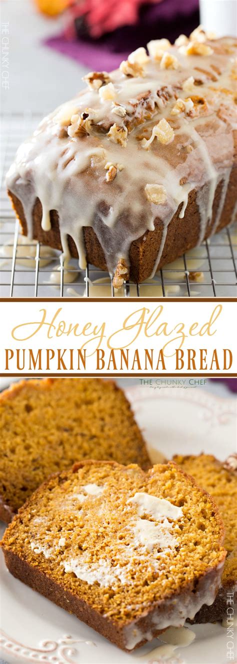 Honey Glazed Pumpkin Banana Bread - The Chunky Chef